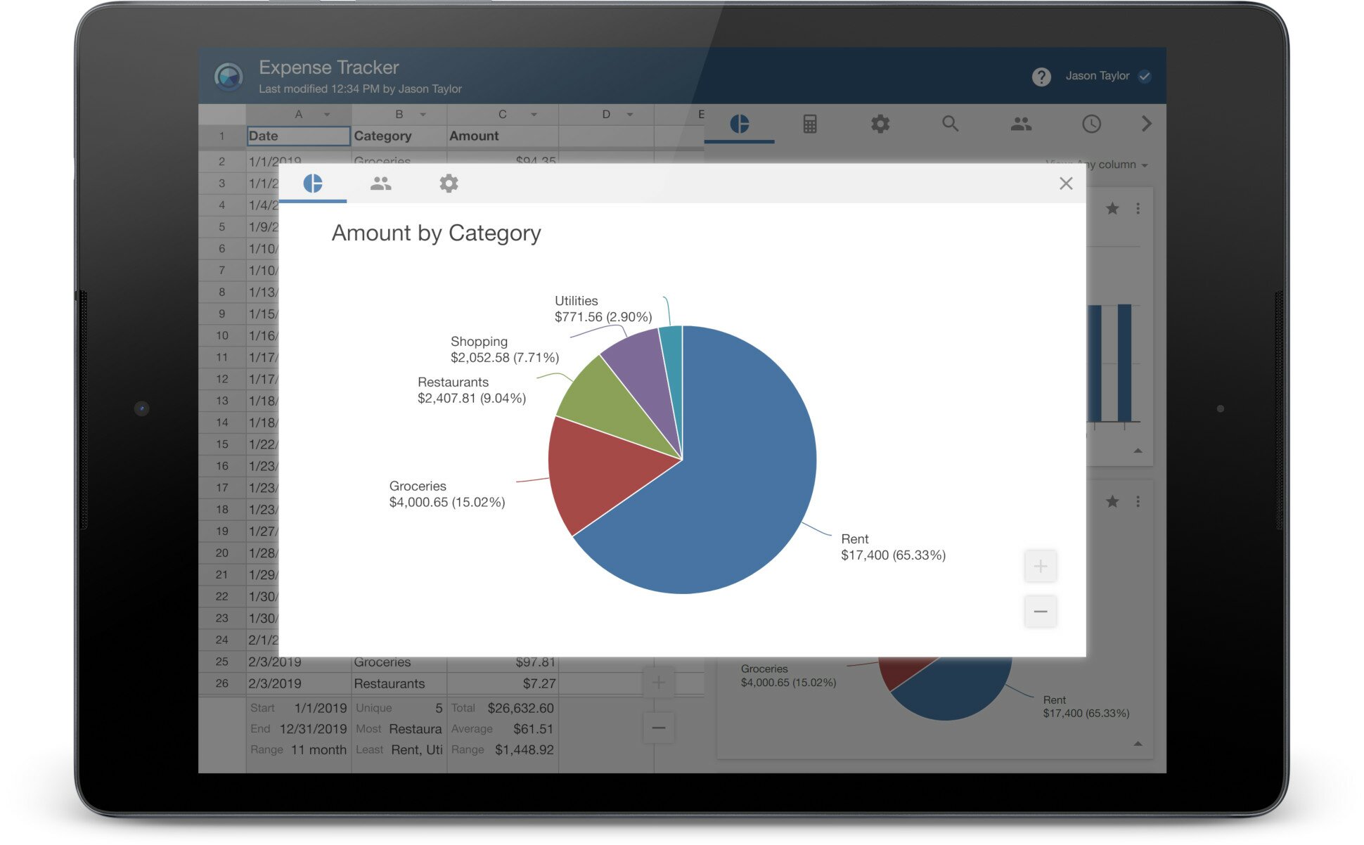 Instics makes analyzing your spreadsheets as easy as copy and paste. Simply type in your data and Instics takes care of the rest by automatically calculating graphs and statistics. Instantly see breakdowns by month and category in a clean and simple interface — no complicated pivot tables.